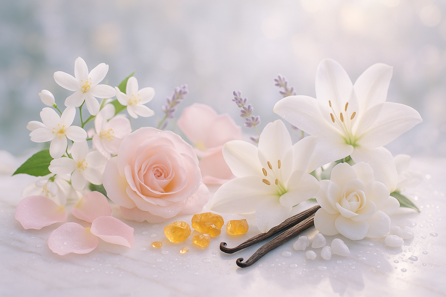 A bright and elegant fragrance that opens with a burst of zesty lemon and airy freshness. At its heart, a delicate blend of rose, raspberry, peach, and jasmine adds a soft floral-fruity allure. The scent settles into a warm, comforting base of musk, vanilla, and creamy sandalwood for a lasting, sensual finish.