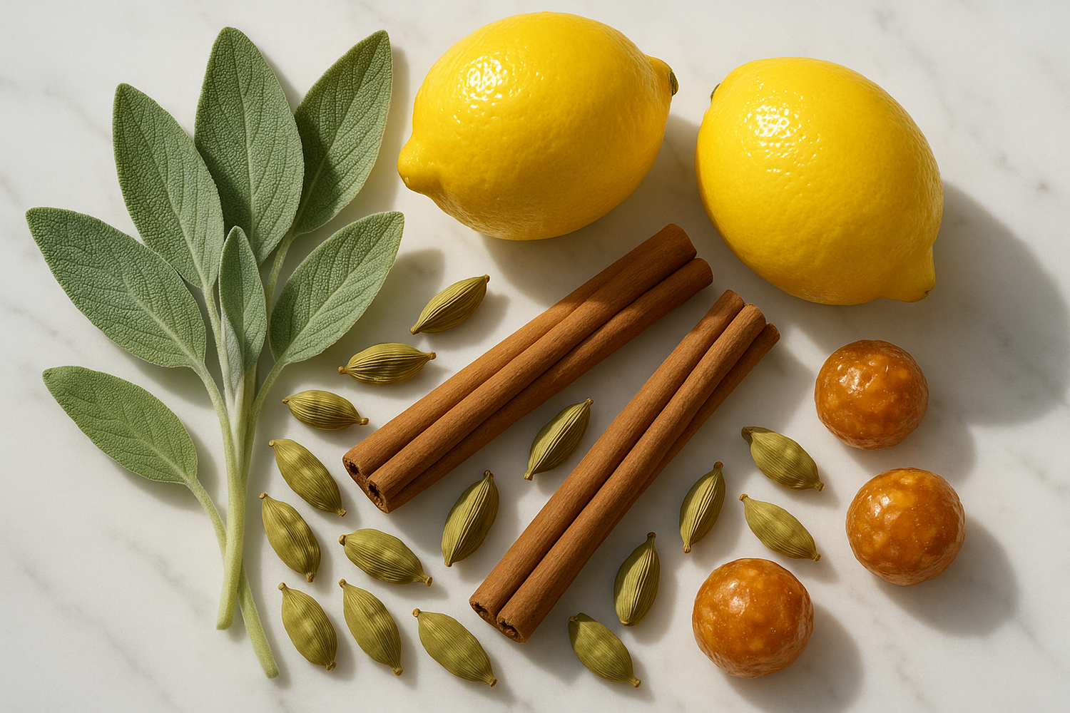 An invigorating opening with notes of sage and lemon that develop into aromatic tones of cardamom and cinnamon infused with the addictive scent of praline