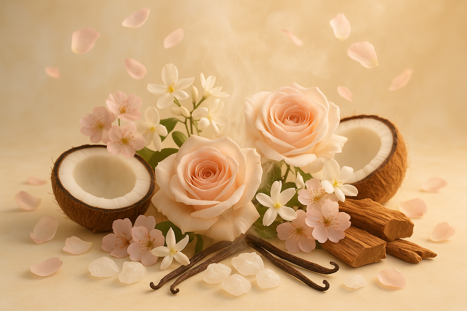 The scent settles into a rich, sensual base of cedarwood, amber, musk, patchouli, and creamy vanilla. Elegant, opulent, and unforgettable.