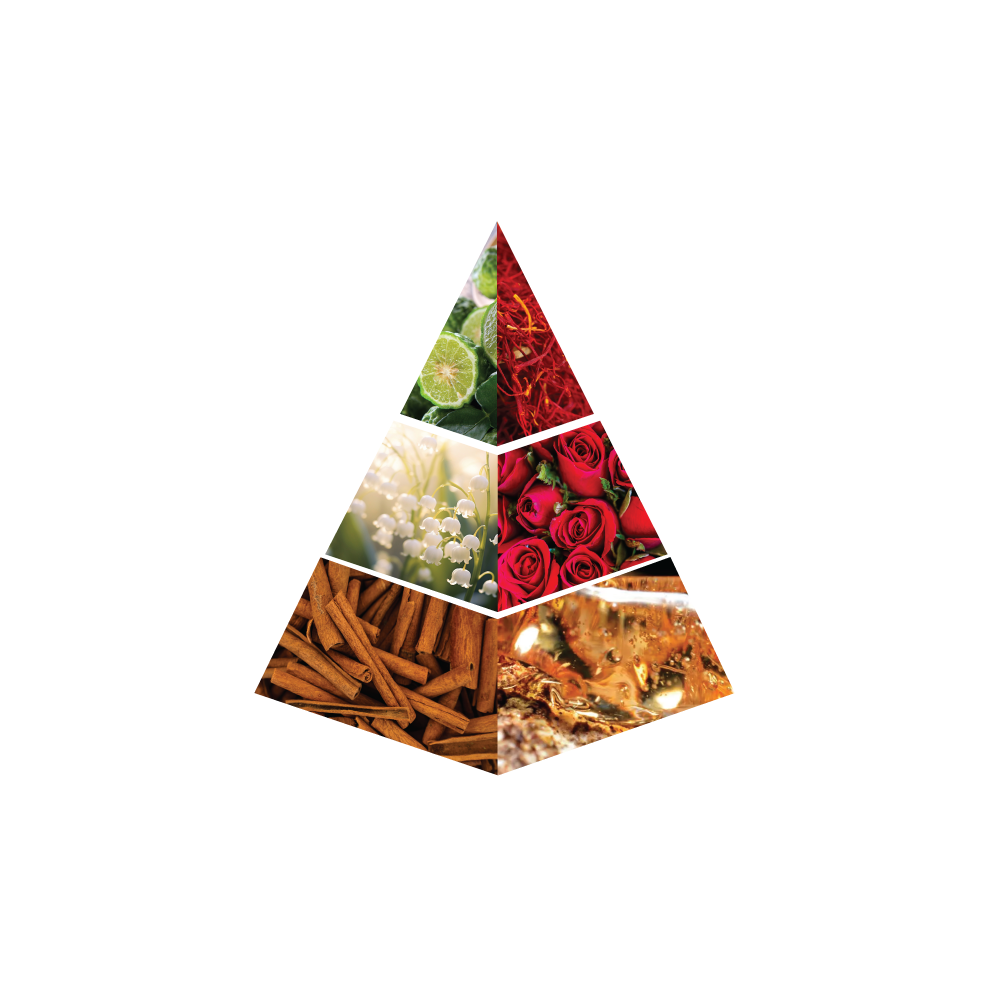 A refined and radiant fragrance that opens with the bright sparkle of bergamot, airy aldehydes, and a touch of spicy saffron. The heart reveals a graceful bouquet of lily of the valley and timeless rose. Anchored by a rich base of warm amber, sensual musk, creamy sandalwood, and deep, resinous oud, this scent exudes elegance and mystery.